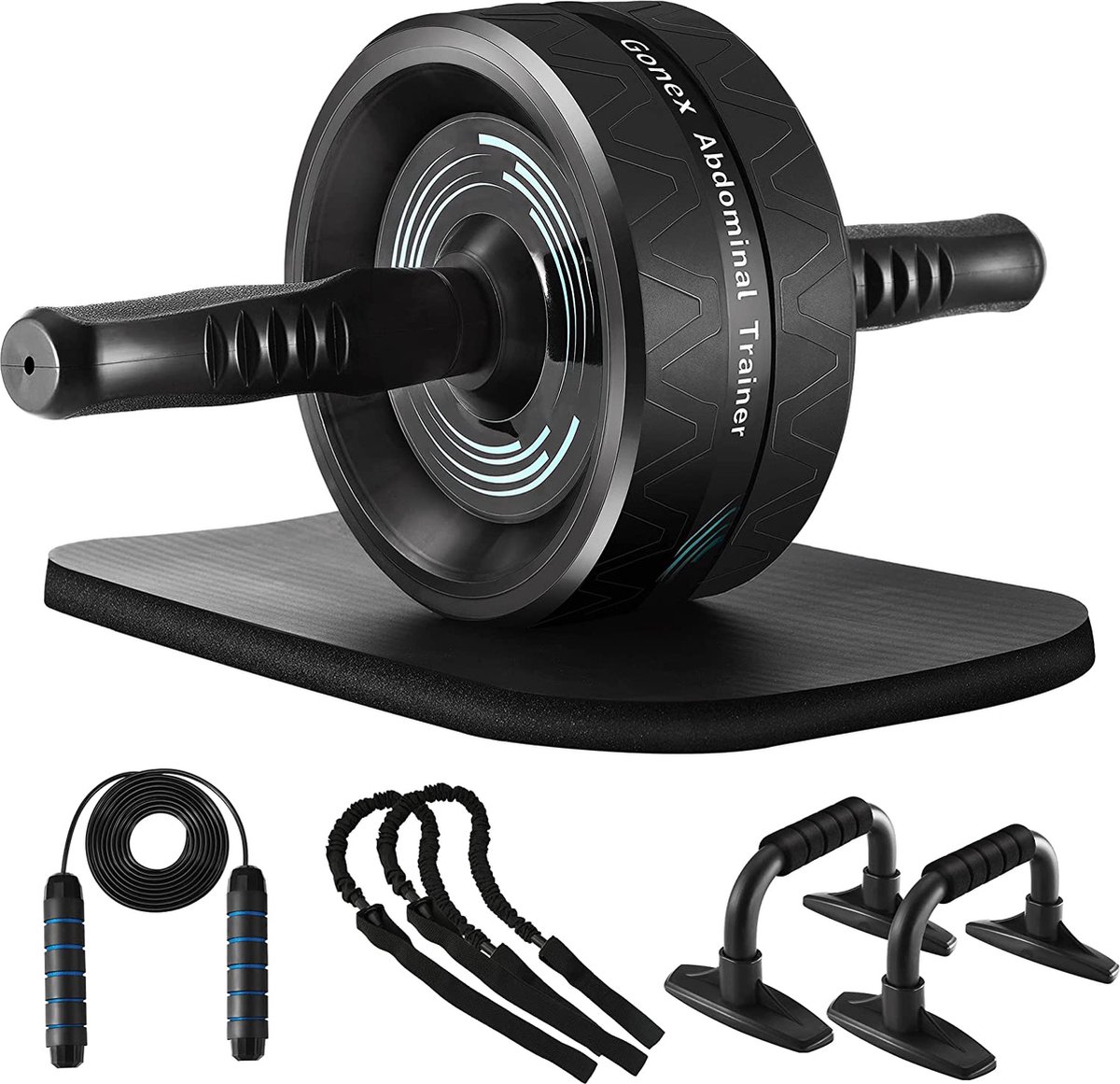 Met de Ab Roller Wheel kit krijgt u een compleet trainingspakket dat uw fitnessniveau verhoogt. Het pakket bevat een abroller, een springtouw, twee opdruksteunen, een kniemat, twee weerstandsbanden en een kompas om uw progressie bij te houden. De abroller is gemaakt van hoge kwaliteit, stevig schuim en robuust staal, waardoor het duurzaam is en gemakkelijk kan worden gecombineerd met uw dagelijkse training. Met dubbele wielen biedt het stabiliteit en vrijheid om uw buikspieren te trainen. Het springtouw is gemaakt van duurzaam nylon en heeft een comfortabele handgreep voor een veilige grip. De opdruksteunen zijn gemaakt van sterke, duurzame materialen die je helpen om je spieren te trainen. De kniemat biedt extra comfort tijdens het uitvoeren van verschillende grondoefeningen. Daarnaast zijn er twee weerstandsbanden met verschillende sterktes en lengtes, zodat je je spieren kunt trainen met meer weerstand. Het kompas helpt je bij het bijhouden van je voortgang. Met de Ab Roller Wheel kit krijgt u alles wat u nodig heeft om uw doelen te bereiken. Dit unieke pakket is een must have voor elke fitnessliefhebber. Krijg nu de Ab Roller Wheel kit voor een geweldige prijs.