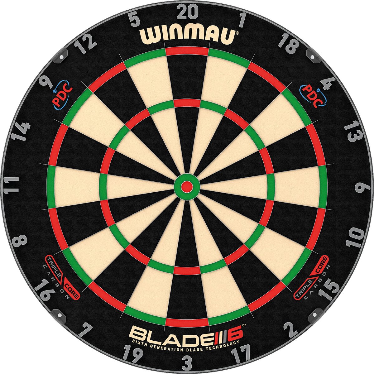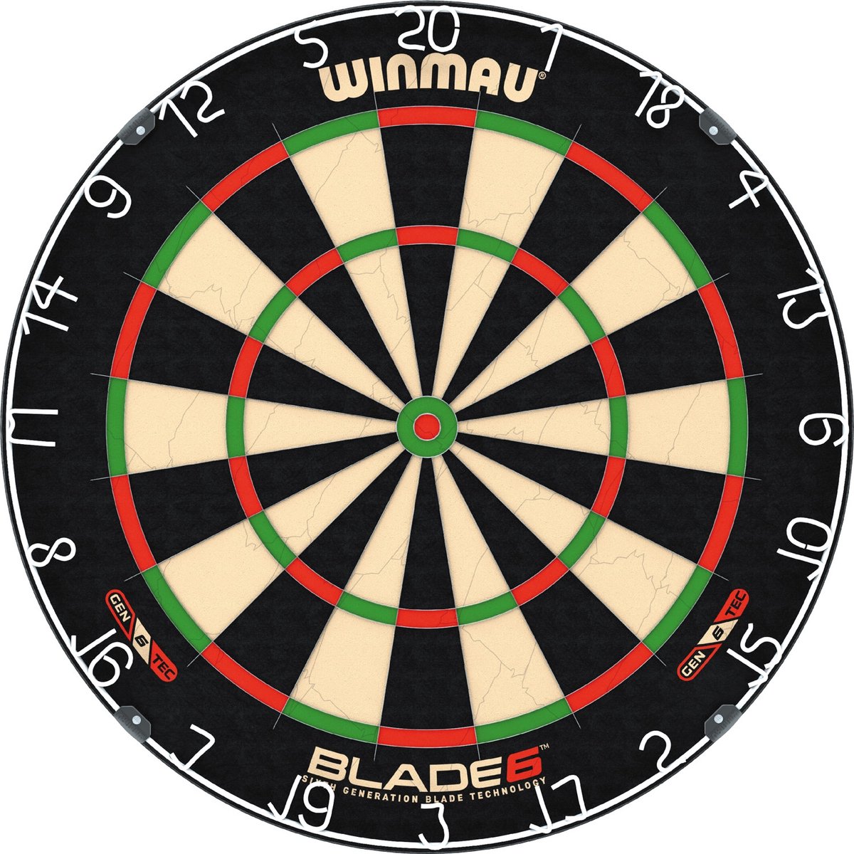 De Winmau Blade 6 Dartbord is het neusje van de zalm als het gaat om dartborden. Het is uitgerust met het nieuwste 'gepatenteerde Density Control-draad voor optimale vezeldichtheid en verbeterde dartretentie in de dubbele, treble- en bullseye-zones. Het Blade 6 dartbord is voorzien van ultradun draad met een hoek van 60 graden, hierdoor buigt de dartpijl af in het scoregebied en het dunne draad zorgt voor minimale bounce-outs. De volledig geharde bullseye en buitenste ring zijn nu 25% dunner. Het Blade 6 dartbord is goedgekeurd voor professionele toernooien en vervaardigd van het beste Oost-Afrikaanse sisal volgens de officiële specificaties van de World Darts Federation. Het is uitgerust met het eenvoudig aan te passen Rota-Lock montagesysteem, waardoor het op elke muur past en je direct kunt spelen. Met de Winmau Blade 6 Dartbord ervaar je een hoogwaardige spelkwaliteit en is het ideaal voor de meest veeleisende spelers.