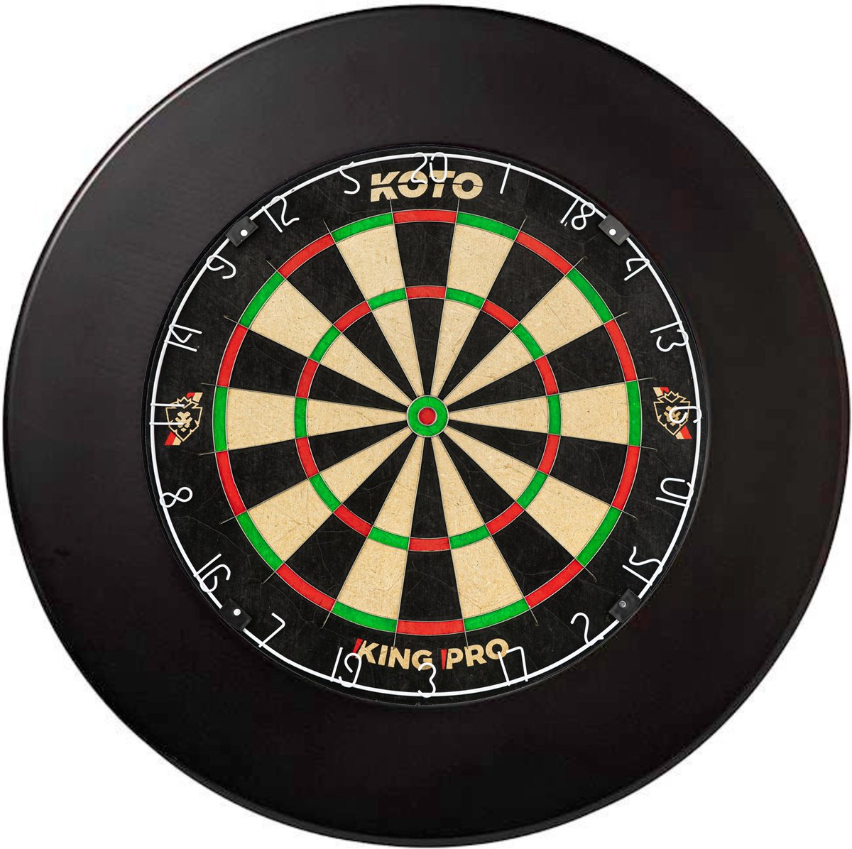 De KOTO Pro Edition + Dartbord Surround Set is perfect voor iedereen die de dartbaan thuis wil hebben. Met dit professionele dartbord kun je veel plezier beleven aan het spelen van darten. Het dartbord is gemaakt van een duurzaam materiaal dat bestand is tegen slijtage. Er is ook een handige surround meegeleverd waardoor je in een handomdraai een dartbaan aan kunt leggen. De surround bestaat uit twee kanten die je eenvoudig aan het dartbord kunt bevestigen. De KOTO Pro Edition + Dartbord Surround Set is ook voorzien van een dartboard catchring. Deze catchring zorgt ervoor dat je darten niet op de grond belanden, maar in de ring. De ring is zo ontworpen dat de darten precies in het midden vallen en je kunt deze ook eenvoudig verwijderen als je klaar bent met spelen. Daarnaast is de KOTO Pro Edition + Dartbord Surround Set ook voorzien van een kwalitatief hoogwaardige installatie- en montagehandleiding, waarmee je eenvoudig stap voor stap kunt monteren.