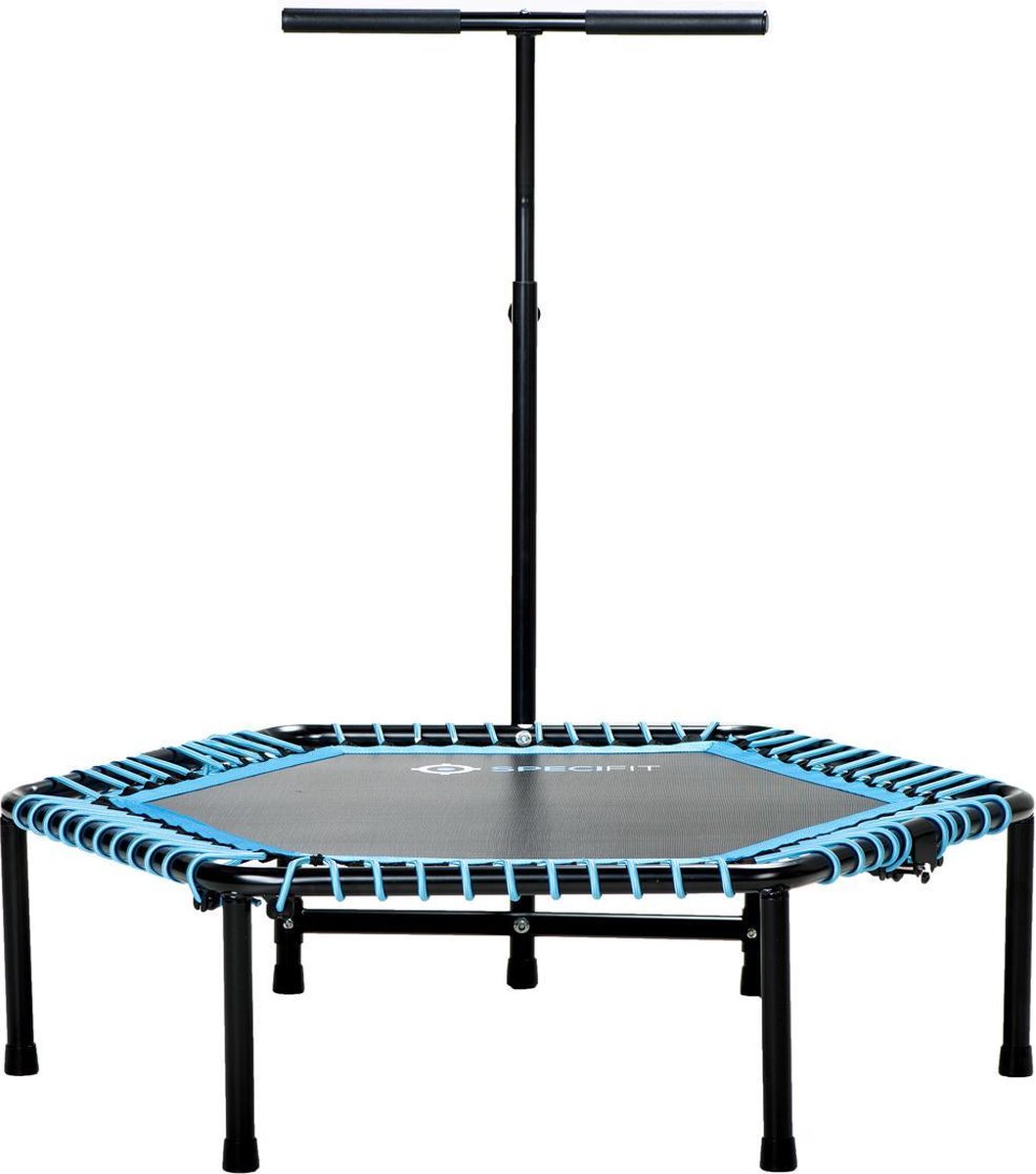 Deze trampoline is voorzien van een stevige constructie met duurzame materialen. Het grote springoppervlak zorgt ervoor dat je met veel plezier kunt springen. Ook heeft deze trampoline een stabiele armsteun voor extra steun en balans tijdens je training. Met deze armsteun kun je extra uitdagende oefeningen doen. Je kunt hiermee bijvoorbeeld je buikspieren en armen versterken. De Specifit® Fitnesstrampoline is ideaal voor zowel beginners als gevorderden. Het is een stevige trampoline waar je heel wat uurtjes plezier op zult beleven. De trampoline wordt geleverd met een handig opbergzakje, waarin je de trampoline makkelijk mee kunt nemen. Zo kun je hem overal mee naartoe nemen! Zet de trampoline op, stap erop en ga aan de slag met je training.
