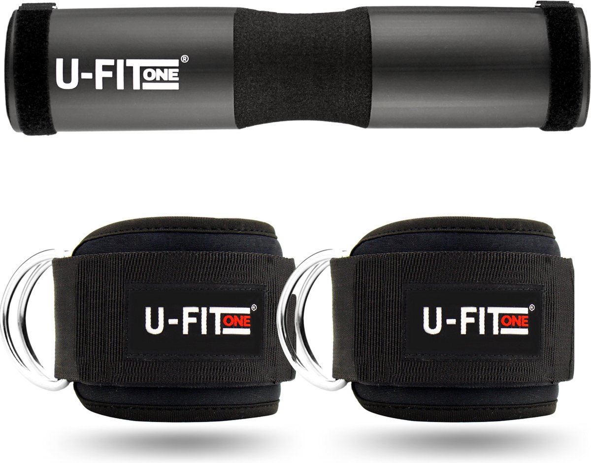 Met de U Fit One Barbell Pad & 2 Stuks Ankle straps set heb je alles wat je nodig hebt voor jouw training. Deze set bevat een barbellpad, twee straps en twee ankle straps. Met het ergonomische ontwerp zorgt dit voor een gelijkmatige gewichtsverdeling over de schouders, waardoor de druk tijdens het squatten verlicht wordt. De dikke padding met hoogwaardige schuimrubber maakt het zwaarste gewicht zacht aanvoelen. Doordat er antislip materiaal op het pad is aangebracht, blijft het stevig zitten en kan het eenvoudig om de stang worden gedaan. De straps fungeren als een gordel waardoor de pad zijn vorm behoudt en stevig blijft zitten tijdens het trainen. Na afloop van je training kan je de barbellpad gemakkelijk opbergen in de bijgeleverde bewaartas. Daarnaast zijn de twee ankle straps perfect voor het versterken van de spieren van het onderlichaam. De nekbeschermer die de set bevat, zorgt ervoor dat je kunt trainen zonder dat je last krijgt van je nek. De straps helpen je bij het richten op je doelen en zorgen ervoor dat je blessures voorkomt. Met deze set kun je verschillende oefeningen uitvoeren, zoals squats, hip thrusts, lunches en meer.