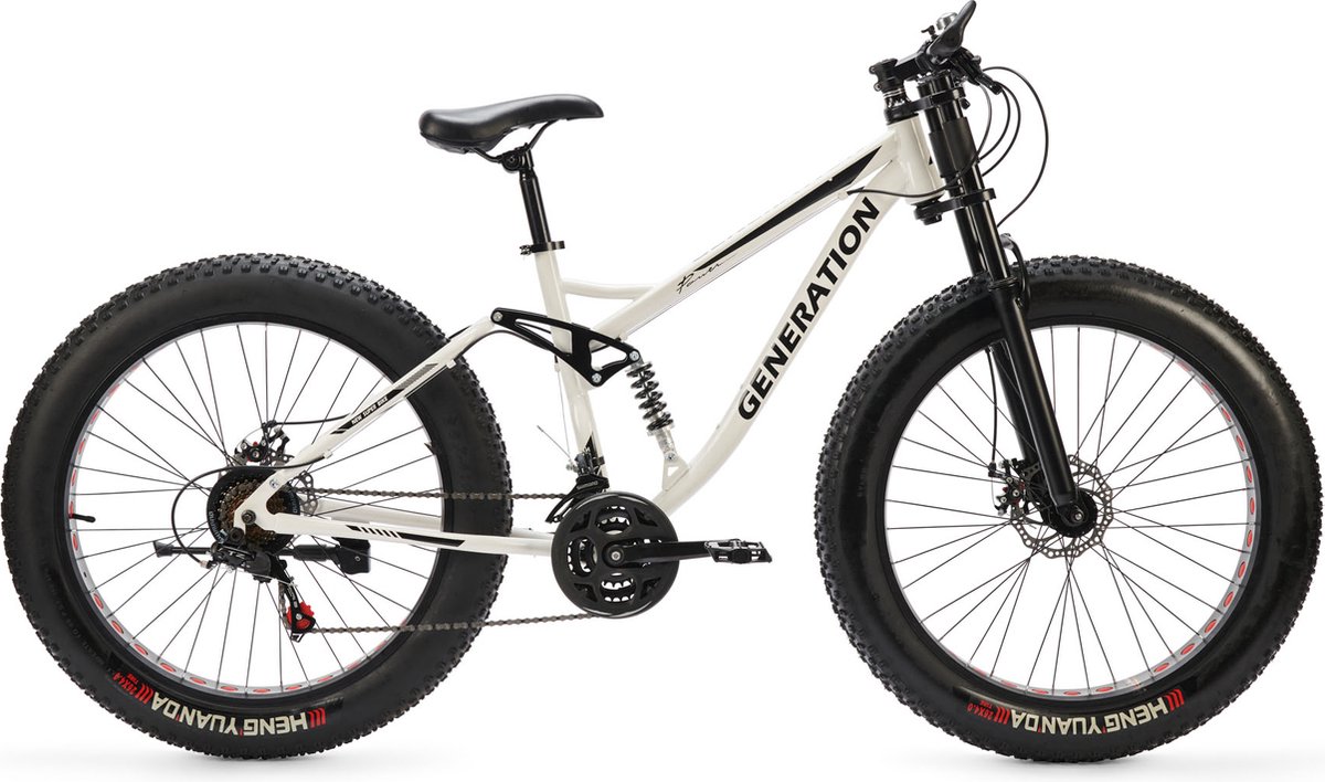 De Generation SUPER BIKE mountainbike 26 inch met brede banden is gemaakt van stevig metaal en heeft een stijlvolle, moderne look. Het frame is krachtig en heeft een stevige constructie om de bestuurder een veilige en comfortabele rit te garanderen. De voorvork en het achterwiel hebben een brede bandenmaat voor extra grip en veiligheid op oneffen ondergronden. De mountainbike is voorzien van 21 versnellingen, waardoor u moeiteloos bergop en bergaf kunt fietsen. De brede, comfortabele zadel en het verstelbare stuur garanderen een comfortabele rit. Daarnaast is de mountainbike voorzien van sterke velgen, dubbele remmen en een lekvrije banden. Deze mountainbike is een fantastische optie voor kinderen die op zoek zijn naar een betrouwbare, veilige en comfortabele fietservaring.