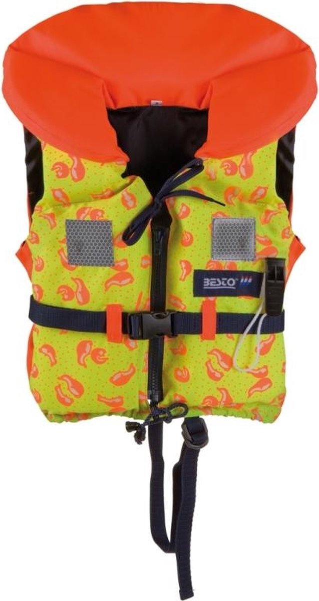 Deze 100N reddingsvest voor kinderen met een gewicht tussen de 3 en 15kg zal je kind automatisch rechtop zetten wanneer het in het water valt. De kraag is speciaal ontworpen om het hoofd van je kind boven water te houden. Daarnaast is het voorzien van een luierbroekje tussen de benen, voor extra bescherming en comfort. Deze luierbroekje is voorzien van een kliksluiting. Verder is deze reddingsvest uitgerust met een fluitje en reflectiestrepen, perfect voor het geval je kind onverwacht in het water terecht komt. Rondom deze reddingsvest zit een verstelbare band met een kliksluiting, zodat je kind het vest comfortabel aan kan doen. Deze reddingsvest is ontworpen met veiligheid in het achterhoofd. Het zal je kind helpen bij het blijven drijven en biedt een extra stukje beveiliging, zodat je kind altijd veilig kan blijven.