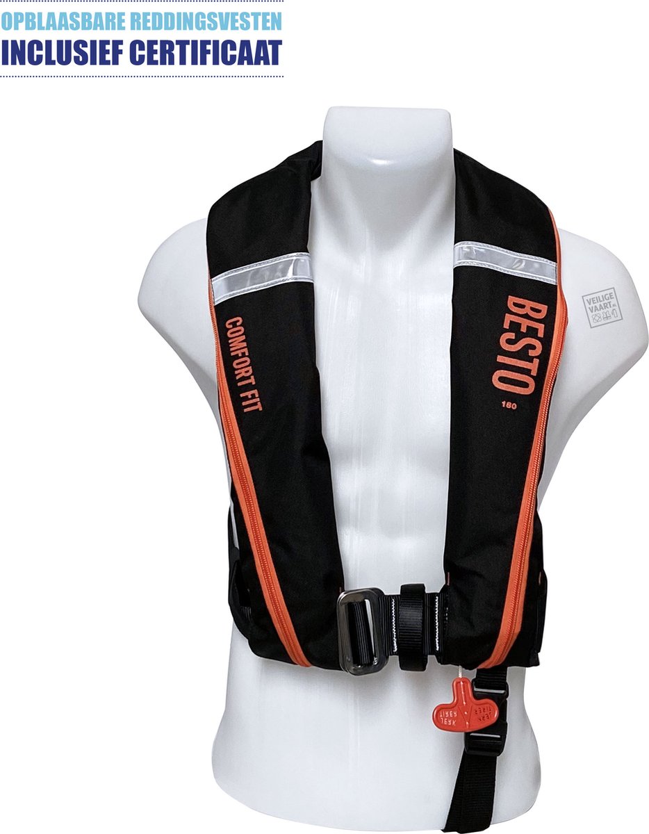 Het Besto Comfort Fit 180N is een automatisch reddingsvest met een hoog drijfvermogen van 180 Newton. Het is speciaal ontworpen met een asymmetrische long waardoor je snel draait in het water. Met het hoge vrijboord biedt het maximale kin- en hoofdondersteuning. Het is dunner en lichter dan ooit, maar heeft toch een hoog drijfvermogen. Het heeft ook een sterke YKK burst rits die de long op de plaats houdt. De rits gaat open bij het afgaan van het reddingsvest zonder nevenschade. Daarnaast is er een soft D-Ring harnas voor gewichtsreductie en een beenband voor extra veiligheid. Reflective panelen zorgen voor extra zichtbaarheid in het donker. De Besto Comfort Fit 180N is de perfecte keuze voor degenen die zwaardere kleding dragen tijdens hun watersporten. Het is het perfecte reddingsvest met een perfecte pasvorm, zodat je zorgeloos kunt genieten van je watersportactiviteiten.
