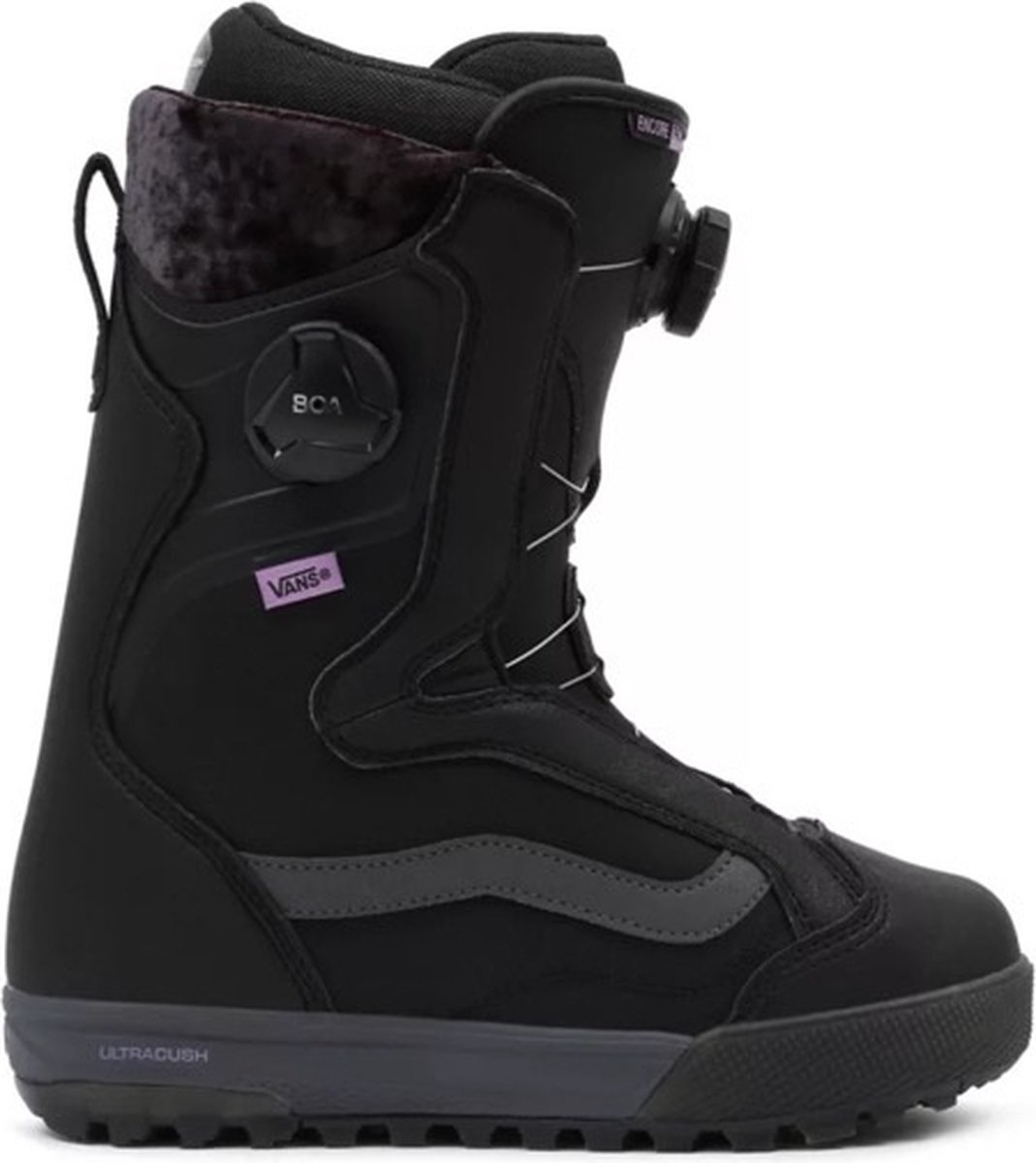 De Vans Encore Pro is een veelzijdige snowboardschoen die comfort en betrouwbare controle biedt. Een innovatief Boa-sluitsysteem op twee plekken zorgt voor onbeperkt en nauwkeurig afstellen. De binnenvoering is gemaakt van UltraCush®-materiaal voor extra steun en het POPCUSH™-voetbed zorgt voor een ongefilterd boardgevoel. De wafelprofielzool biedt onbeperkte mobiliteit voor een optimaal snowboarden. Deze stijlvolle schoen is verkrijgbaar in de maat 40 in een zwart-lila-witte kleurcombinatie en is voorzien van het Vans-logo op de tong.