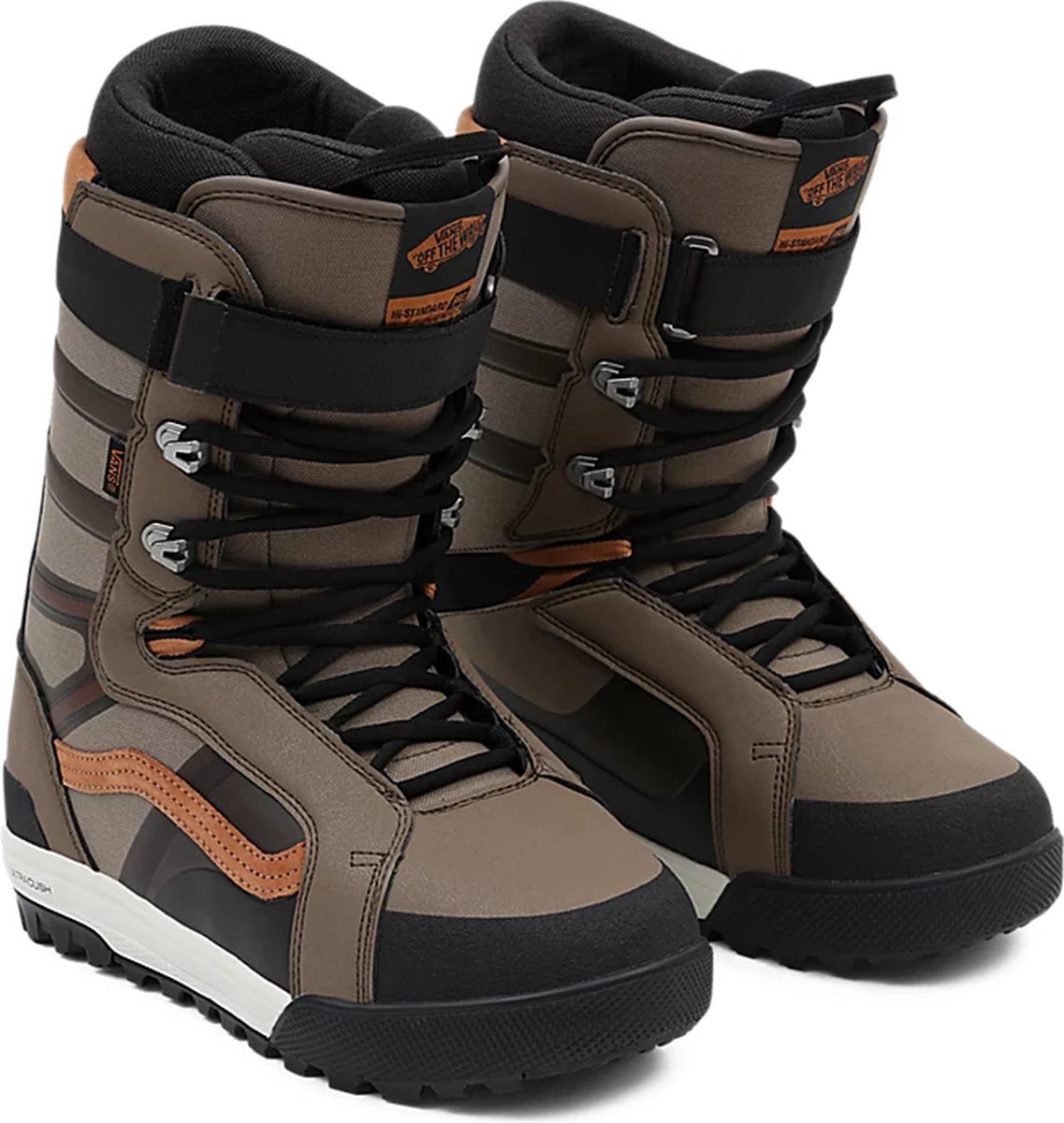 De Vans Hi-Standard Pro snowboardschoenen walnut bieden een combinatie van stijl en prestaties. De schoen is ontworpen met een volledige reeks V2-componenten die zorgen voor een uitstekende steun en bescherming. De walnotenkleurige stijl is geïnspireerd op de progressieve historie van de Hi-Standard-serie, waardoor de schoen een zelfverzekerde en outfit-versterkende uitstraling krijgt. De extra verstevigde hiel en het gevoerde tongpaneel bieden extra comfort en duurzaamheid, terwijl de UltraCush-voetbedden en de voorgevormde voorvoeten de voeten goed ondersteunen. Kortom, de Vans Hi-Standard Pro snowboardschoenen walnut bieden een hoogwaardige combinatie van stijl en prestaties, waardoor je de piste kunt knallen met vertrouwen.