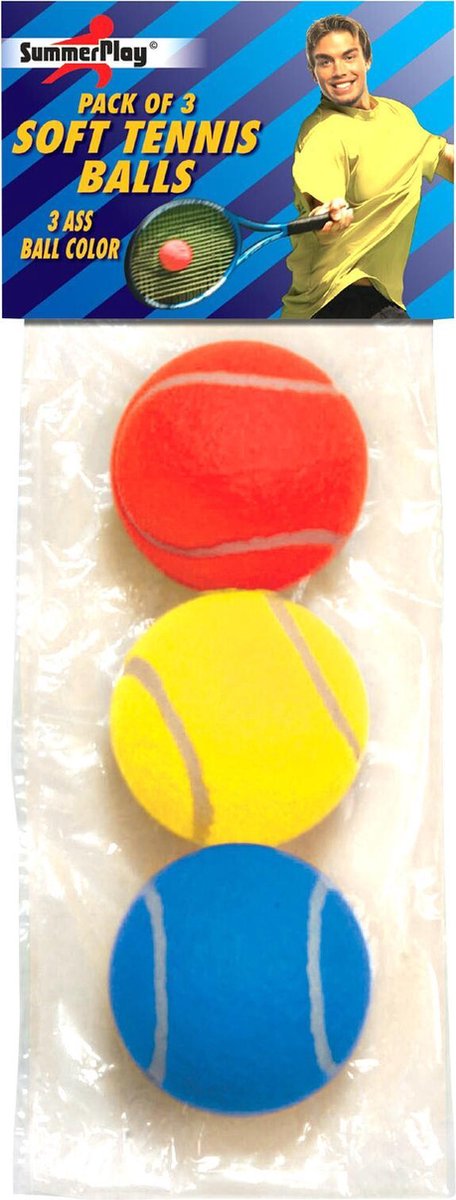 Deze set bestaat uit 3 stuks soft foam tennisballen in de kleuren blauw, rood en geel. Deze zachte ballen zijn gemaakt van foam, waardoor ze erg zacht aanvoelen. Dit maakt het spelen met deze ballen leuk en comfortabel. De ballen zijn ongeveer 7 cm in diameter, waardoor ze perfect zijn voor het spelen van kleine games zoals tafeltennis, badminton of zelfs volleybal. Deze ballen zijn gemakkelijk in gebruik en staan garant voor vele uren plezier. Ze zijn leuk voor kinderen en volwassenen van alle leeftijden. Ze zijn ook ideaal voor het oefenen van slagen en verbeteren van je vaardigheden in tennis, badminton of andere raquetsporten. Dankzij de zachte foam materialen voelen de ballen niet alleen zacht aan, maar zijn ze ook duurzaam en kunnen ze tegen een stootje. Pak je set van 3 stuks soft foam tennisballen vandaag nog en geniet van het spelen!
