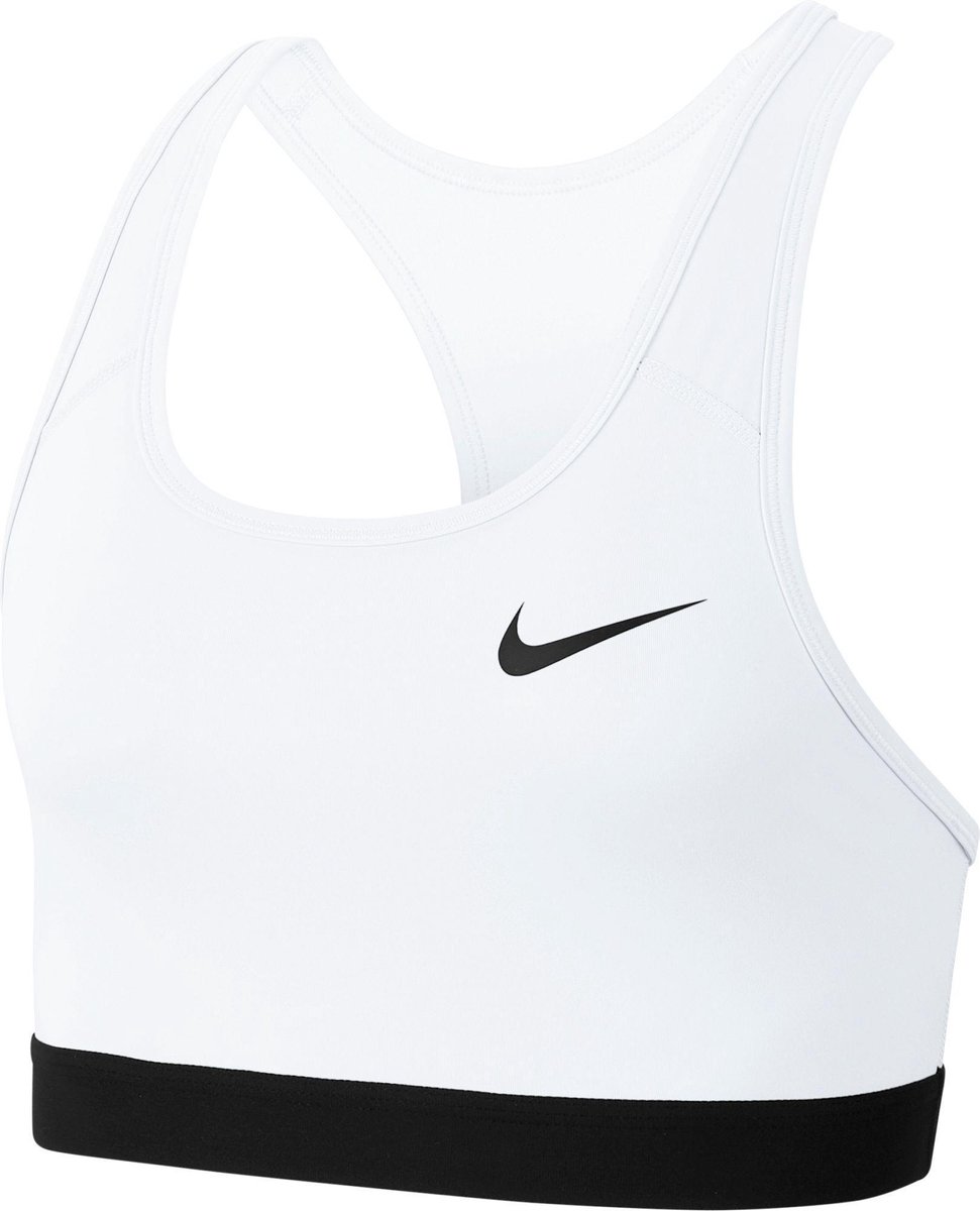 De Nike W NK DF SWSH BAND NONPDED BRA Dames Sportbeha is ontworpen met een strakke pasvorm en racerback die veel bewegingsvrijheid biedt. Deze sportbeha biedt medium ondersteuning, waardoor je je optimaal kunt bewegen tijdens je training. Het Dri-FIT materiaal voert vocht snel af en houdt je droog en comfortabel, waardoor je je energie kunt blijven geven tijdens je training. De sportbeha is verkrijgbaar in een zwart-witte kleurcombinatie. Het materiaal bestaat uit 82% gerecycled polyester en 18% elastaan, waardoor de sportbeha comfortabel en duurzaam is. Deze Nike sportbeha is ideaal voor intensieve trainingen en biedt je de perfecte ondersteuning.