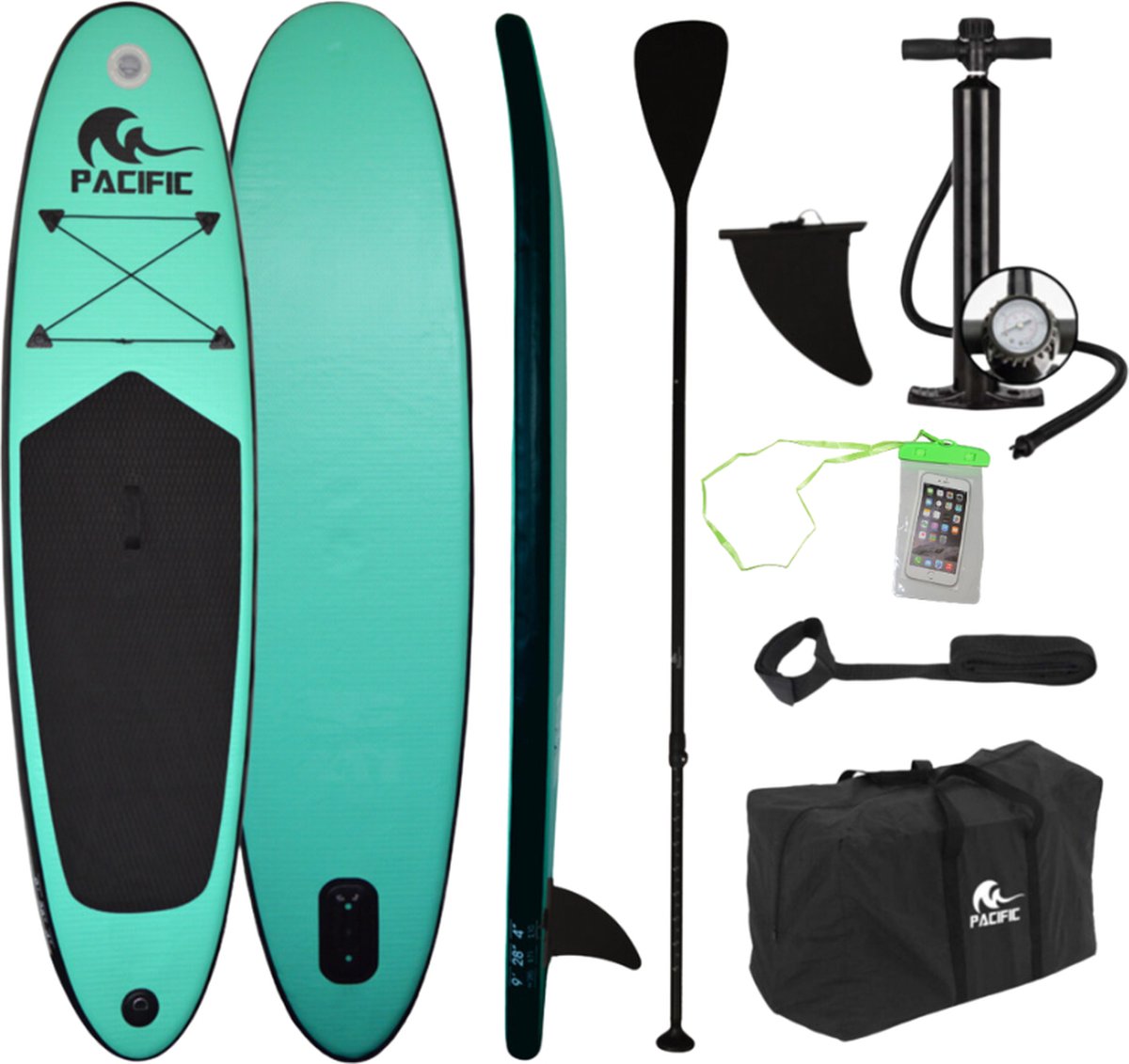 De Pacific SUP set is speciaal ontworpen voor avontuurlijke sporters die graag willen suppen. Met het Pacific SUP board van 285 cm, 6 delig kan je verder varen dan ooit tevoren. Het board is gemaakt van duurzaam materiaal en is voorzien van een speciale print. De set bevat verder een waterdicht telefoonhoesje waardoor jouw telefoon ook altijd veilig meegaat. Ook is de set afgewerkt met een drijfvermogen van ongeveer 250 kg. De Pacific SUP set is eenvoudig op te zetten en te vervoeren. De pomp, peddel en draagtas maken het mogelijk om het SUP board te verplaatsen naar jouw favoriete watersport locatie. De peddel is gemaakt van hoogwaardige materialen die je meer controle en kracht bieden. Met de speciale design van het board kun je snel en stabiel varen. De Pacific SUP set is een must-have voor iedereen die op zoek is naar een opblaasbaar SUP board van topkwaliteit.