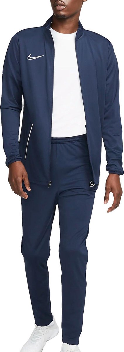 Het Nike Academy Trainingspak is een casual pak dat je er altijd goed uit laat zien. Het is gemaakt van een mengsel van 100% polyester voor een soepele en comfortabele pasvorm. De regular fit en taps toelopende pijpen met rits onderaan geven je een stijlvol uiterlijk en maken het pak ook geschikt voor meer formele gelegenheden. Elastische tailleband met aantrekkoord zorgt voor een perfecte pasvorm. Dit trainingspak heeft twee steekzakken in de broek en in het jasje, waardoor je al je essentiële items gemakkelijk mee kunt nemen. De navy kleur maakt het pak uniek en zorgt voor een moderne en klassieke look. Dit Nike Academy Trainingspak is een must-have voor elke fashionista. Het is perfect om te combineren met een basic T-shirt, een hoodie of een sweater. Maak je look helemaal af met een paar sneakers en je bent klaar om te gaan. Je kunt het ook dragen op een meer formele gelegenheid voor een chique look. Of je nu op zoek bent naar een casual of formele look, dit trainingspak is een must-have om in je garderobe te hebben.