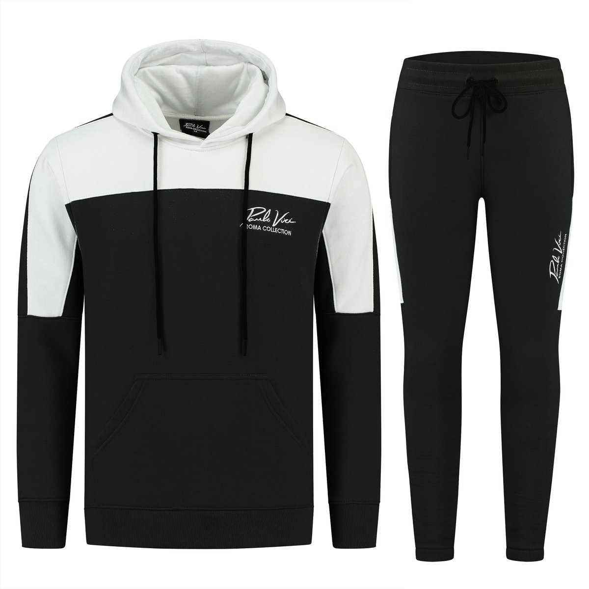 De set is afgewerkt met een kleurrijk logo op de borst, wat de set een stijlvolle uitstraling geeft. De joggingbroek is voorzien van twee steekzakken en een elastische tailleband, waardoor je alles wat je mee wilt nemen gemakkelijk mee kunt nemen. De hoodie is voorzien van een capuchon en een trekkoord om je warm te houden in koud weer. De kraag en de mouwen zijn afgewerkt met ribstof. De Paulo Vici Tracksuit set is een must-have voor elke man. Of je nu een avontuurlijke buitenmens bent of gewoon een fashionista, deze set is een must-have voor iedereen. De set is ideaal voor elke dag, van een dagje uit naar een avondje stappen in stijl. De set is verkrijgbaar in verschillende kleuren en maten, dus er is voor ieder wat wils.