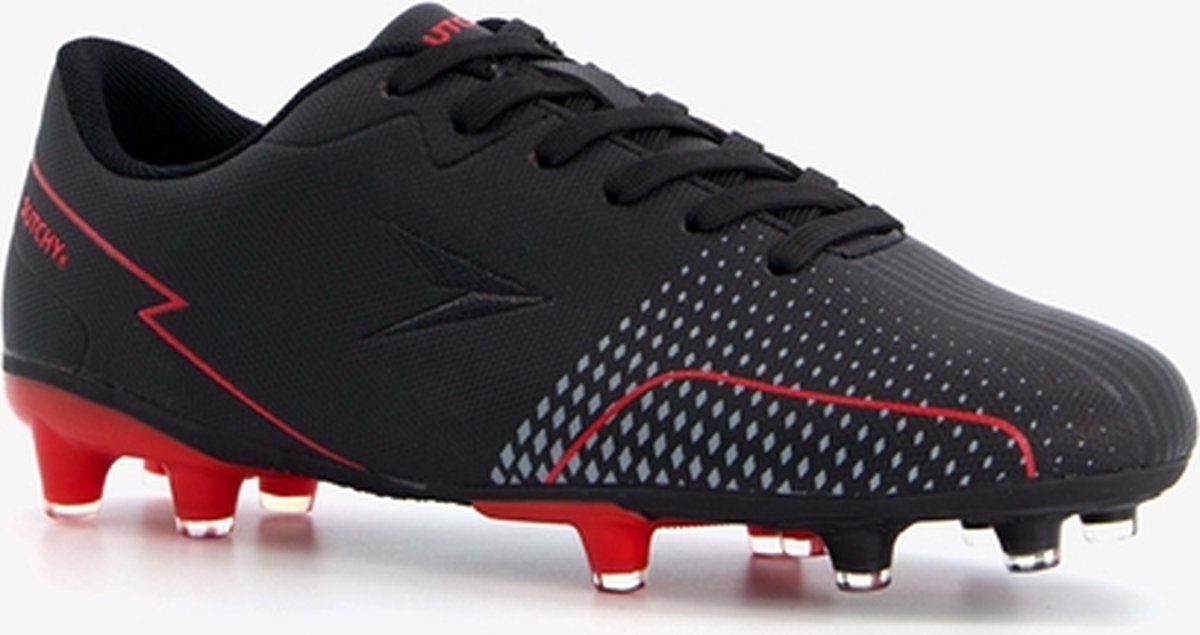 De Dutchy Attack voetbalschoenen voor kinderen geven je kind een comfortabel gevoel tijdens het voetballen. De schoenen zijn gemaakt van stevig leer met een binnenwerk van textiel en een uitneembare binnenzool met maatcheck. Met de elastische veters met klittenbandsluiting kun je de schoenen op maat aanpassen, zodat ze perfect aansluiten. Bovendien zorgen de zwarte accenten met groene details voor een stijlvolle look. De Firm Ground zool is gemaakt van kunststof noppen die je veel grip geven op het veld, zelfs als het nat is. De noppen geven je kind veel steun en stabiliteit bij het voetballen. Bovendien is de zool voorzien van verstevigingen aan de zijkanten die de voeten extra bescherming bieden. Met deze Dutchy Attack voetbalschoenen kunnen kinderen al snel voetballen zoals de professionals.