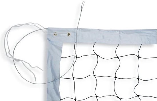 Eurosport Volleybalnet 9,50 x 1 m met Staalkabel is het ideale net voor recreatief gebruik. Deze net is gemaakt van polypropyleen, een sterk en duurzaam materiaal dat gemakkelijk schoon te maken is. Het net is knopenloos, met een ca. 3 mm dikke bovenband van 6 cm breed. In de bovenband is een staalkabel van 4 mm breed verwerkt, terwijl de onderkant afgewerkt is met touw. Het net is ook vervaardigd uit polyethyleen, een slijtvast materiaal dat een ca. 2 mm dikke netafmetingen heeft van 9,50 x 1m. De maaswijdte bedraagt ca. 10 cm. Aan de netkleur is er gekozen voor zwart, wat een mooi contrast geeft met de volleybal. Om het net vast te maken aan de palen wordt er een nylon spandraad van 11,70 m lang meegeleverd.